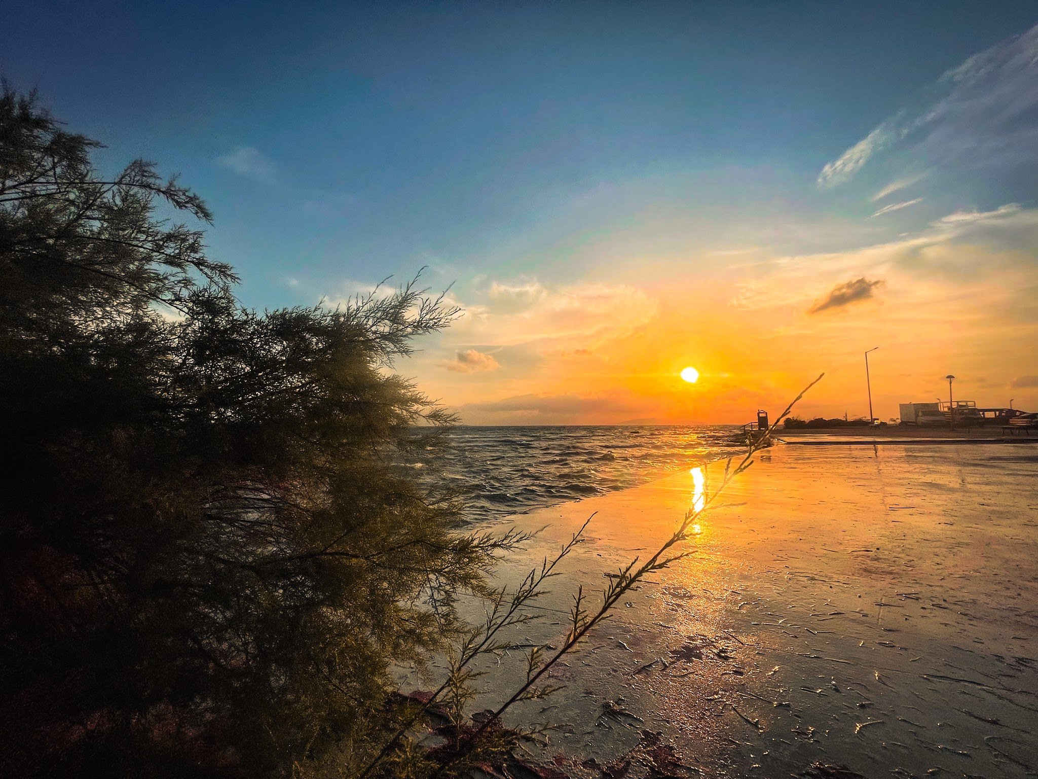 Σε ένα ιδιαίτερο σημείο της παραλιακής, υπάρχει μια "πλατεία" όπου ο χρόνος μοιάζει να σταματά. Τα δέντρα εδώ, σμιλεμένα για χρόνια από το μελτέμι και την αλμύρα, μοιάζουν με αληθινά γλυπτά που πλαισιώνουν τον ορίζοντα. Θεωρείται το απόλυτο σημείο για να δεις την ανατολή του ηλίου στην πόλη. Καθώς το πρώτο φως λούζει τα παγκάκια και τη θάλασσα, η ατμόσφαιρα γίνεται απίστευτα ζεστή, δημιουργώντας ένα κινηματογραφικό κάδρο που δεν χρειάζεται κανένα φίλτρο.
