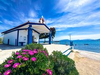 Jednym z nich jest Kościół Świętych Konstantyna i Heleny (Ιερός Ναός Αγίων Κωνσταντίνου και Ελένης), dosłownie „przyklejony” do linii morza. To jedno z tych miejsc, gdzie trudno oddzielić modlitwę od pejzażu, szum fal towarzyszy tu każdej chwili, a krótki postój po spacerze brzegiem morza wydaje się czymś zupełnie naturalnym.